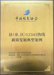 陕西佳县一案例获评全国12345热线新质发展典型案例近日,由中国信息协会主办的2025县(市、区)12345热线发展大会在山东烟台召开,其中由佳县行政审批服务局报送的《佳县12345热线闭环小...来源:智慧中国网