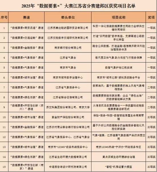 “数据要素x”大赛再创辉煌,建邺斩获一等奖全省各区县榜首!近日,2025年全国"数据要素x"大赛江苏省分赛决赛已圆满收官,本次赛事吸引了全省1299支队伍踊跃参与,共同角逐14条行业赛道的竞赛项目。其中,南京市...来源:紫金山新闻