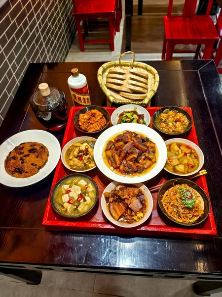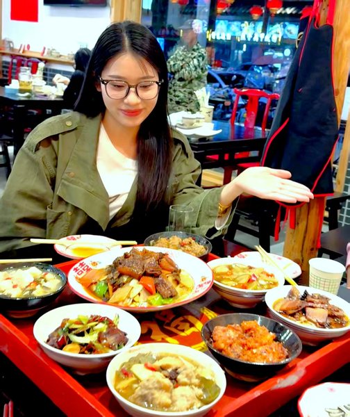 十色排开,桌面瞬间化作关中大地的调色盘。我先听——酥肉掰断,“咔嚓”脆响在屋梁回弹三圈;再吃——糟肉入口即化,油脂先给舌尖镀一层“金膜”,醪糟甜、酱香、果香依次绽放;八宝甜饭的蜜汁沿喉咙滑下,像把童年偷舔的麦芽糖重新点亮。邻桌深圳妹子直播:“姐妹们,这香味在舌尖放烟花,比CBD夜景还闪!” 北京游客王潇端起相机连拍:"不用滤镜就是故宫红!"更让她惊艳的是味道—— "酥肉一口'咔嚓',里面却爆出滚烫鲜汤,像关中人的豪爽里裹着细腻。"