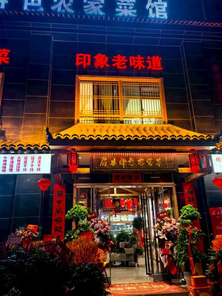 趁着周末,我特意驱车前往,约几个朋友只为亲口验证那传说中的“十碗金香”。车过张载祠,空气里忽然掺进一丝柴火酱香,像有人隔空招手。跟着香味拐进安阳街,汇丰佳苑小区门口西侧,两盏大红灯笼猎猎作响——“印象农家菜”五个斑驳金字,像给远道之人打开的时空门。