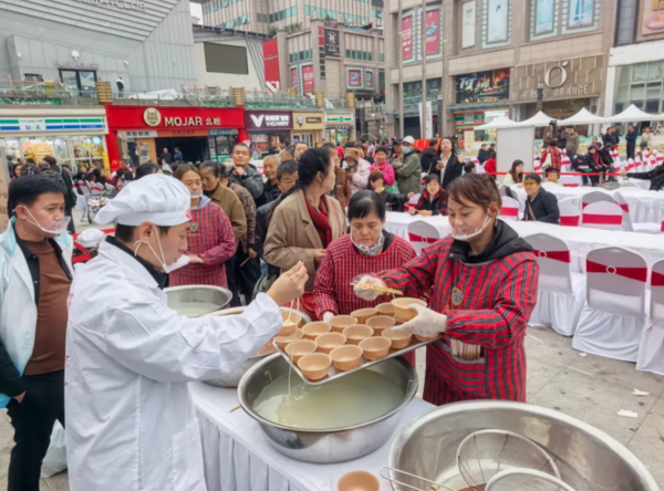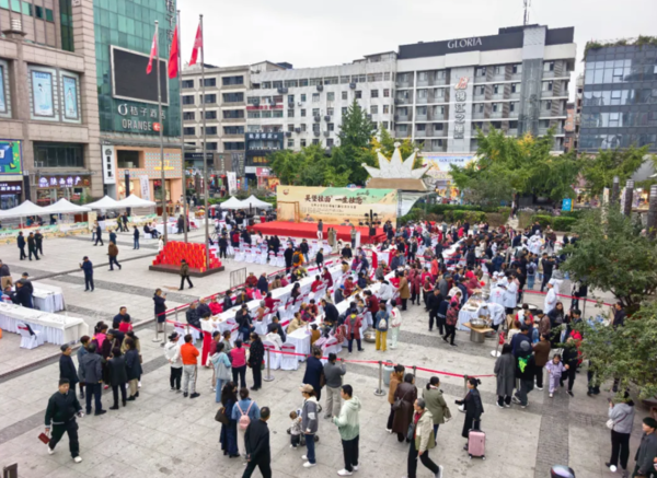 10月18日,西安市钟楼兴正元广场人声鼎沸、面香四溢,吴堡非遗挂面宴在此热闹开席。吴堡县委书记、县长陈耀忠到场观摩指导,县委副书记魏国宣布活动开始,县政府党组成员王德烽出席活动,数万市民游客齐聚一堂,共赴这场美食与文化的狂欢盛宴。