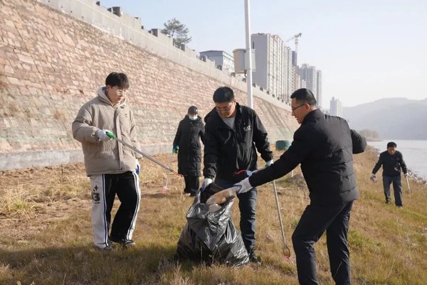 11月28日清晨,吴堡县黄河城区段河道上已一片忙碌。吴堡县河长制办公室组织各成员单位开展黄河吴堡县城区段河道白色垃圾、漂浮物集中清理志愿服务活动,维护河湖健康生态。
