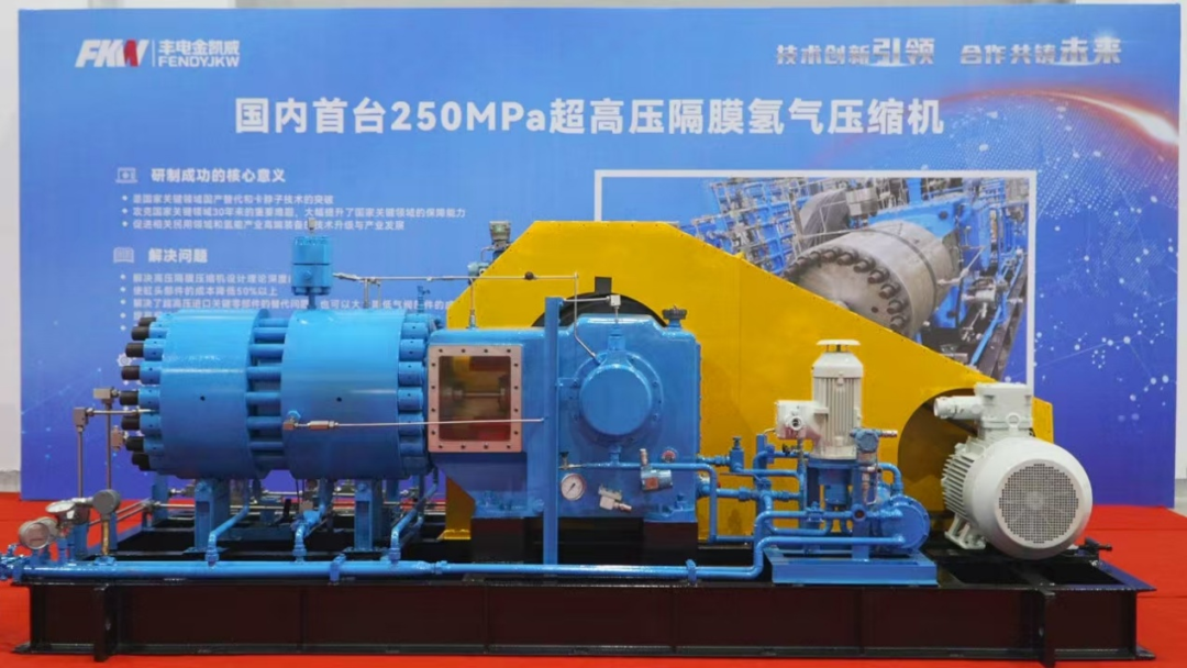 氢能综合利用:稳定生产出口压力达45MPa及以上,甚至90MPa的氢气隔膜压缩机,满足了加氢站等场景的超高压需求;加氢站用高压氢气切断阀、瓶口阀、针阀、球阀、截止阀、安全阀、单向阀等关键阀门已实现批量供货,性能指标达到国外同类产品水平。