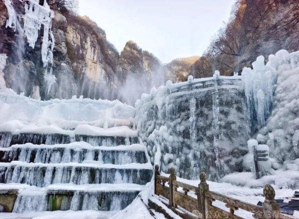 雪落太白,是天地间最纯粹的留白。初雪来时,似柳絮因风起舞,轻柔地吻过红桦的枝丫、松针的锋芒,而后便以磅礴之势覆盖山峦。一夜之间,莲花峰的峭壁褪去丹霞色,化作白玉雕琢的屏障,夏日里奔腾不息的瀑布凝固成静止的诗行——百米冰瀑如银河垂落,冰挂如钟乳倒悬,冰棱如利剑出鞘,阳光穿透时,整座山崖便成了流光溢彩的水晶宫。行至泼墨山,雪落在唐代诗人留下的题刻上,墨色的字迹与白色的雪痕相映,仿佛千年的诗意被冰雪封存,又在风声中缓缓流淌。