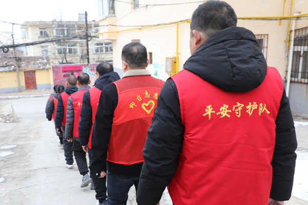 一支由矿区退休工人、社区居民和工作人员组成的“煤凹凹”志愿服务队准时从北街社区院子里出发。他们列队齐整,身着红色的志愿服按照既定路线开展当天的巡逻工作。