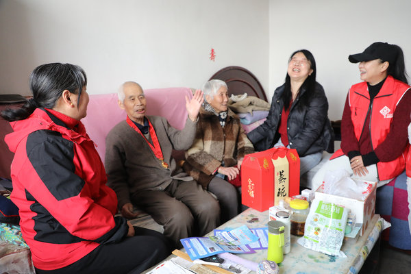 临近春节,那些在外务工的孩子们即将陆续返乡。街北社区也提前准备了年货,针对辖区内的老党员、退役军人、困难群众和残疾人等群体陆续开展春节前的慰问活动。今天,服务队的队员们带着社区食堂自制的蒸碗前往老党员陈德顺和百岁老人陈秀云家中。