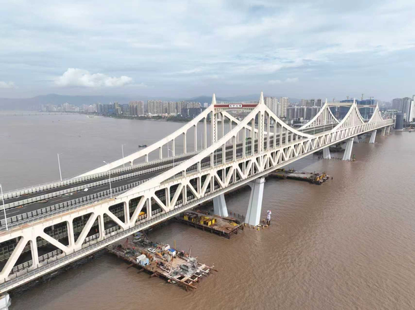 近日,由中交路建承建的国内最大跨度的公轨两用多塔刚性悬索桥——浙江永宁大桥完成桥梁荷载试验,为大桥通车奠定坚实基础。