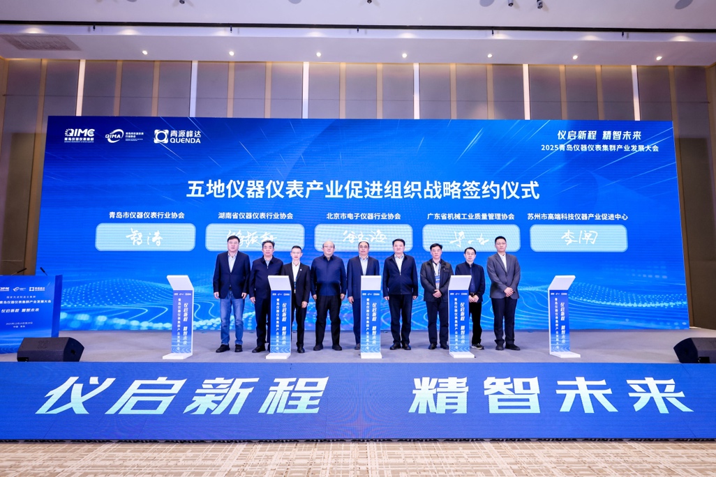 活动现场举行了五地仪器仪表产业促进组织战略合作签约仪式。北京电子仪器行业协会、广东省机械工业质量管理协会、湖南省仪器仪表行业协会、苏州市高端科技仪器产业促进中心与青岛市仪器仪表行业协会共同签署战略合作协议。各方将秉持“优势互补、协同共赢、务实高效”原则,在产业链协作、技术创新联动、资源要素共享等方面深化合作,携手提升仪器仪表产业核心竞争力,共同打造全国跨区域产业协同发展新典范。